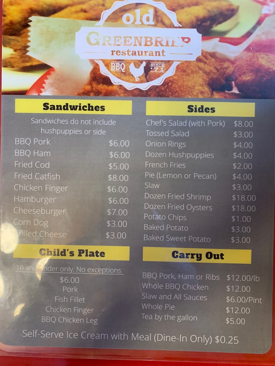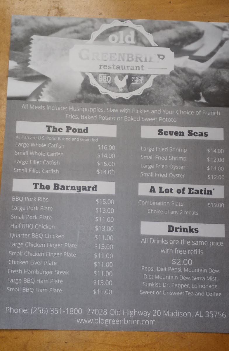 Welcome to Greenbrier Restaurant, a beloved gem nestled in Madison, Alabama. Known for its mouthwatering BBQ and generous portion sizes, the menu boasts a variety of options that will satisfy any appetite. Dive into the A Lot of Eatin' combination plate, where you can select two delicious meats for just $19—a guest favorite for its quality and taste.